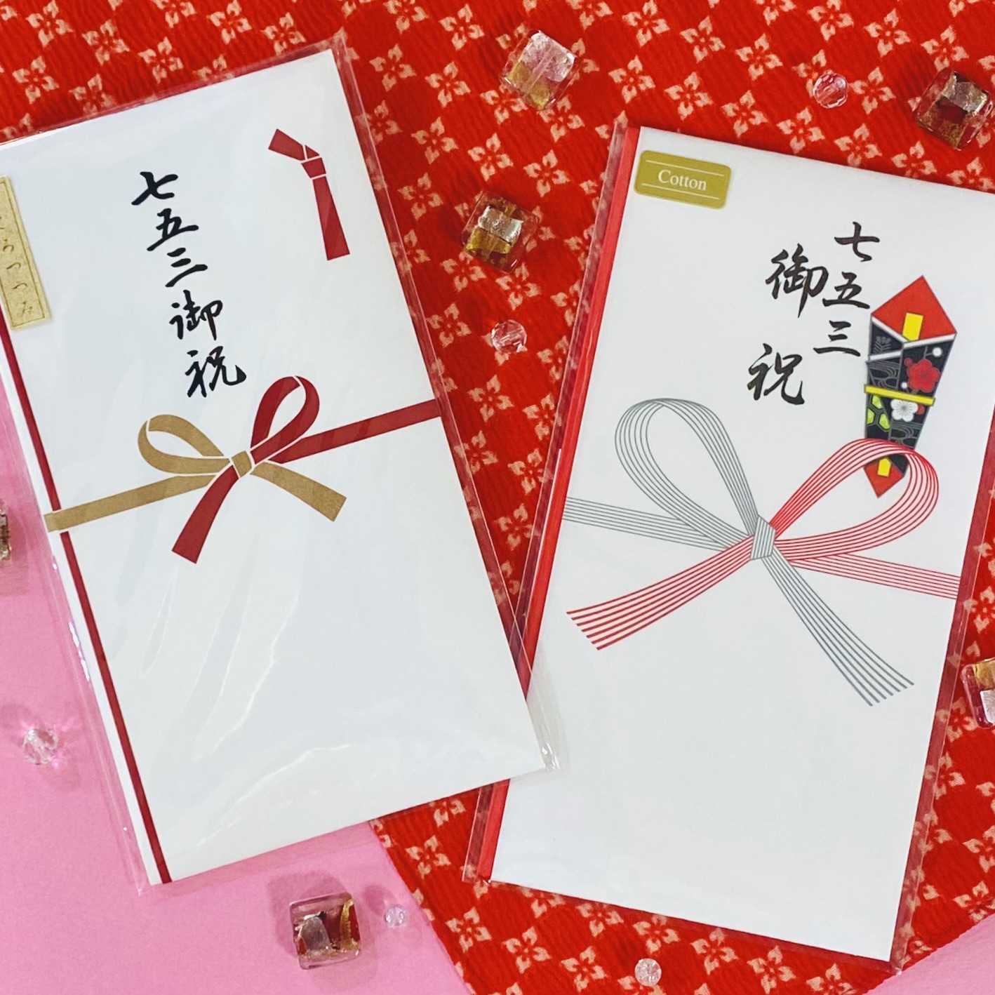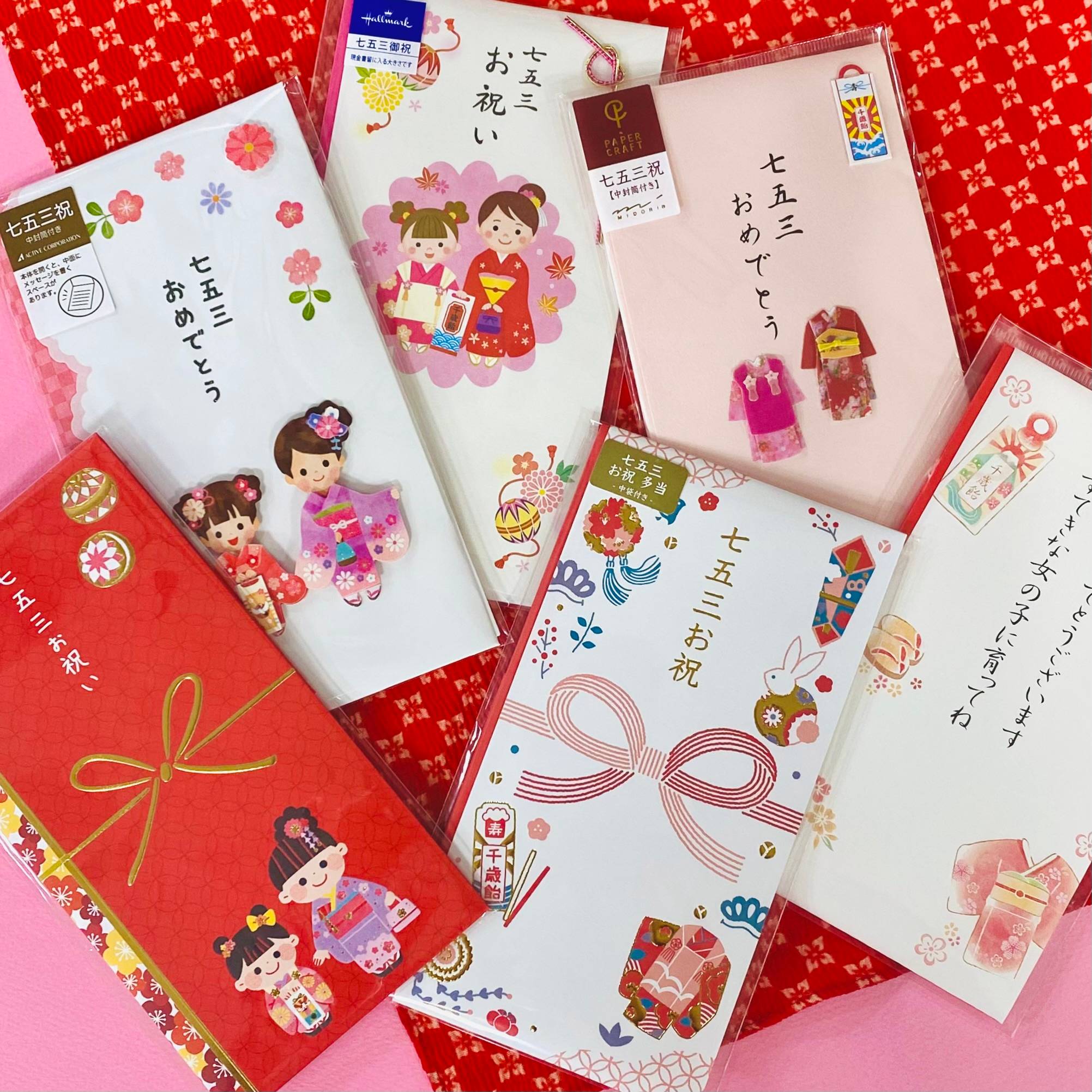 可愛らしいデザイン・シンプルなデザインなどなど、種類豊富に七五三祝儀袋が店頭に並んでおります♪
