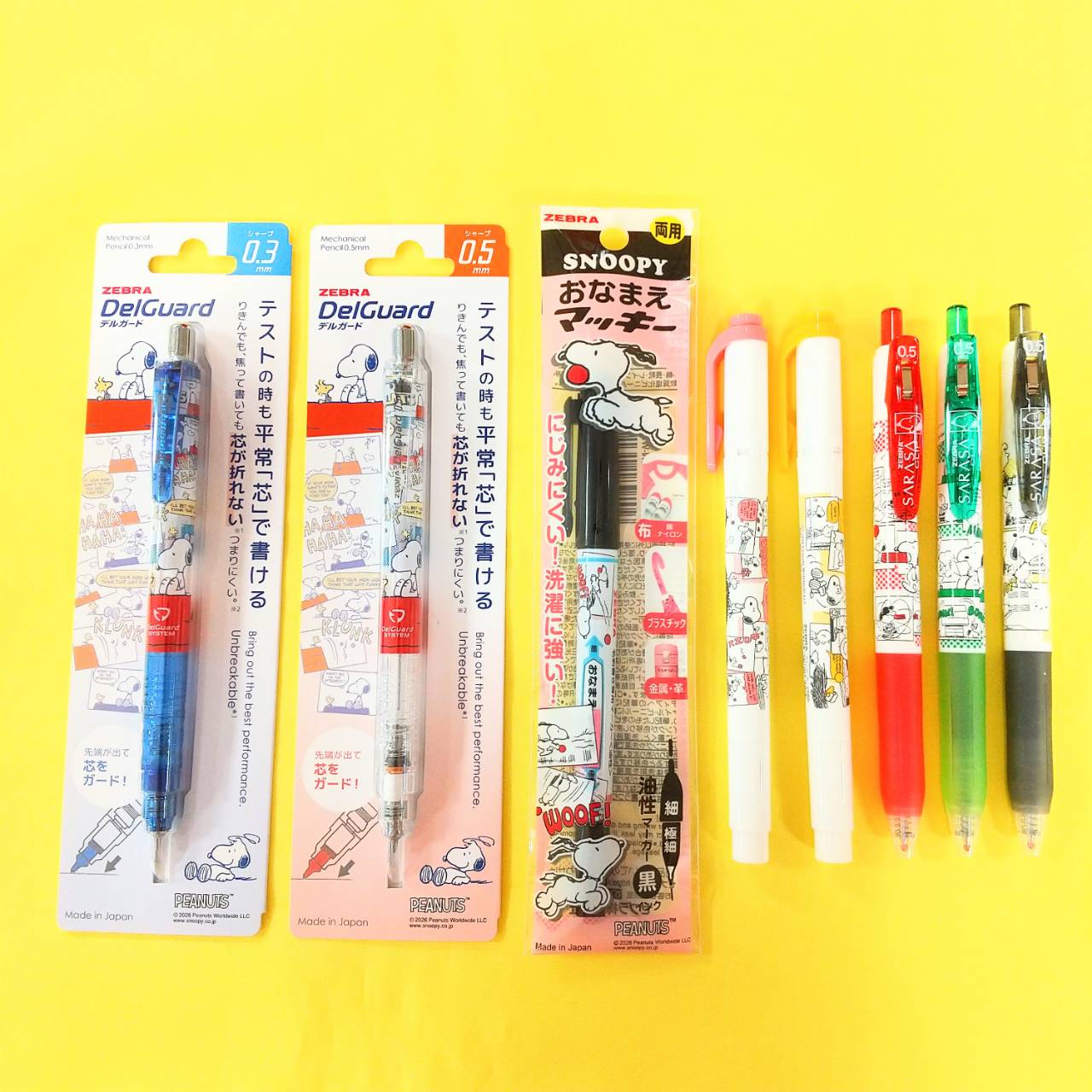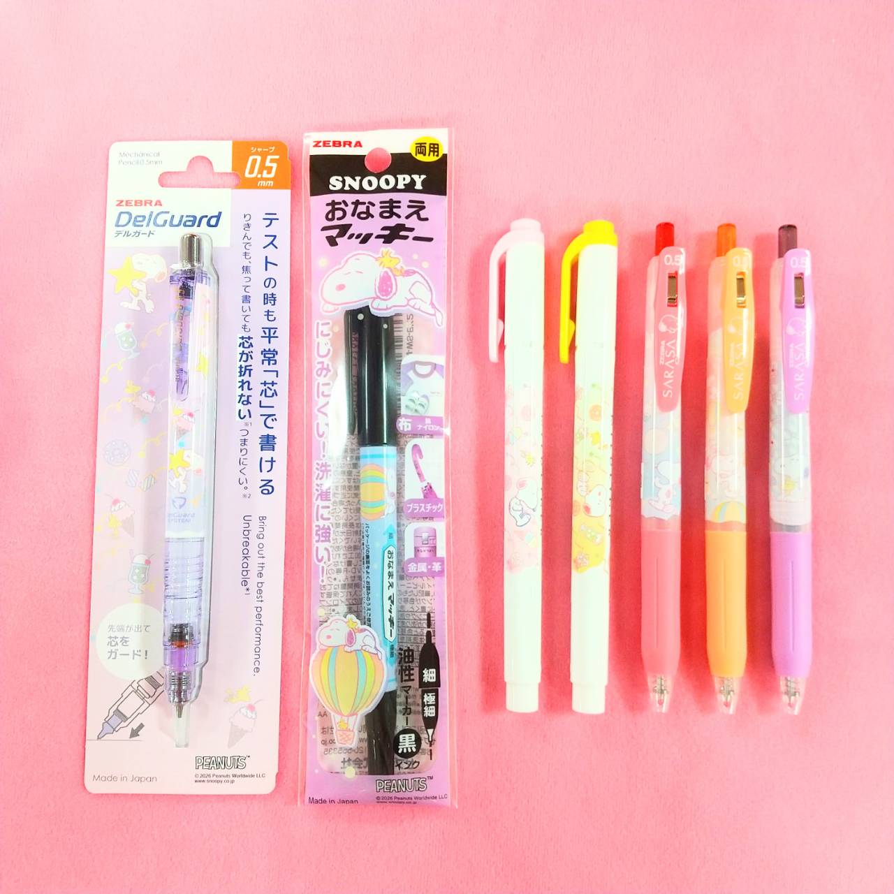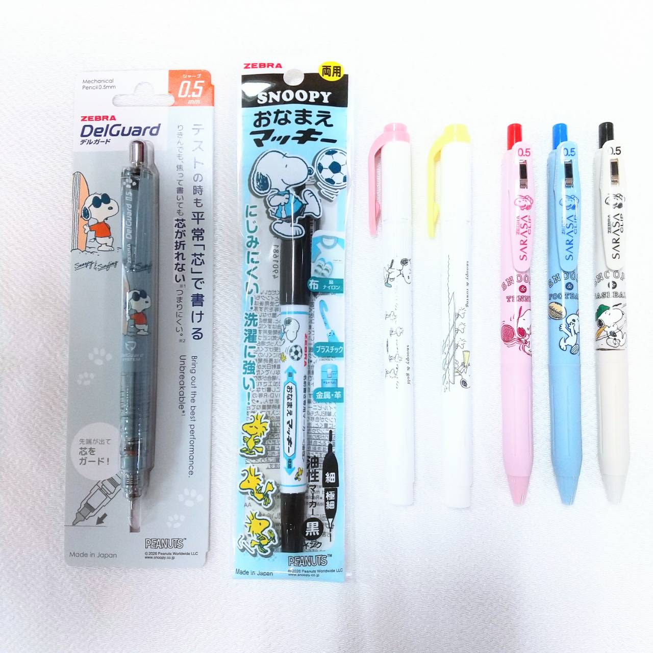 シャープペンにラインマーカー、ボールペンにおなまえペンと必要な筆記具が全て揃えられるので、スヌーピー好きにはたまりません!